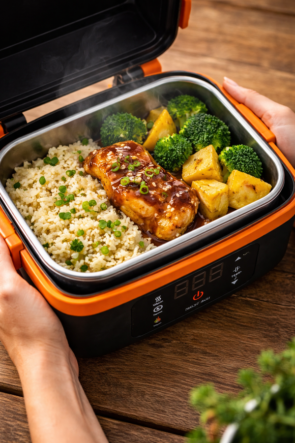 Je l’utilise tous les jours au travail depuis plus d’un mois et franchement ça a complètement changé mes pauses déjeuner. Avant je mangeais souvent froid ou j’attendais le micro-ondes du bureau… maintenant je programme le matin et à midi mon repas est chaud. Je mange beaucoup mieux et je fais des économies.